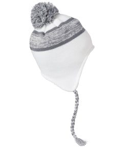 100% acrylic knit; Microfleece lining; Heathered pom; Braided tassels; J America labeling;
