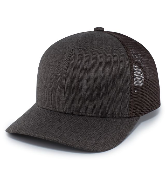Upgrade your look with the stylish Herringbone Trucker Cap from Pacific Headwear. This adjustable snapback trucker cap features on-trend herringbone fabric on the front panels and visor, adding a touch of sophistication to your style. The pro-stitched finish ensures durability and a clean, polished look. With its mid-profile, pro-model crown and curved visor, this cap offers a comfortable and fashionable fit. The snapback closure allows for easy adjustment. Crafted from a combination of trucker mesh and polyester, it provides breathability and long-lasting quality. Whether you're promoting your brand, representing your business, or attending an event, the Herringbone Trucker Cap is a standout choice that will set you apart.
