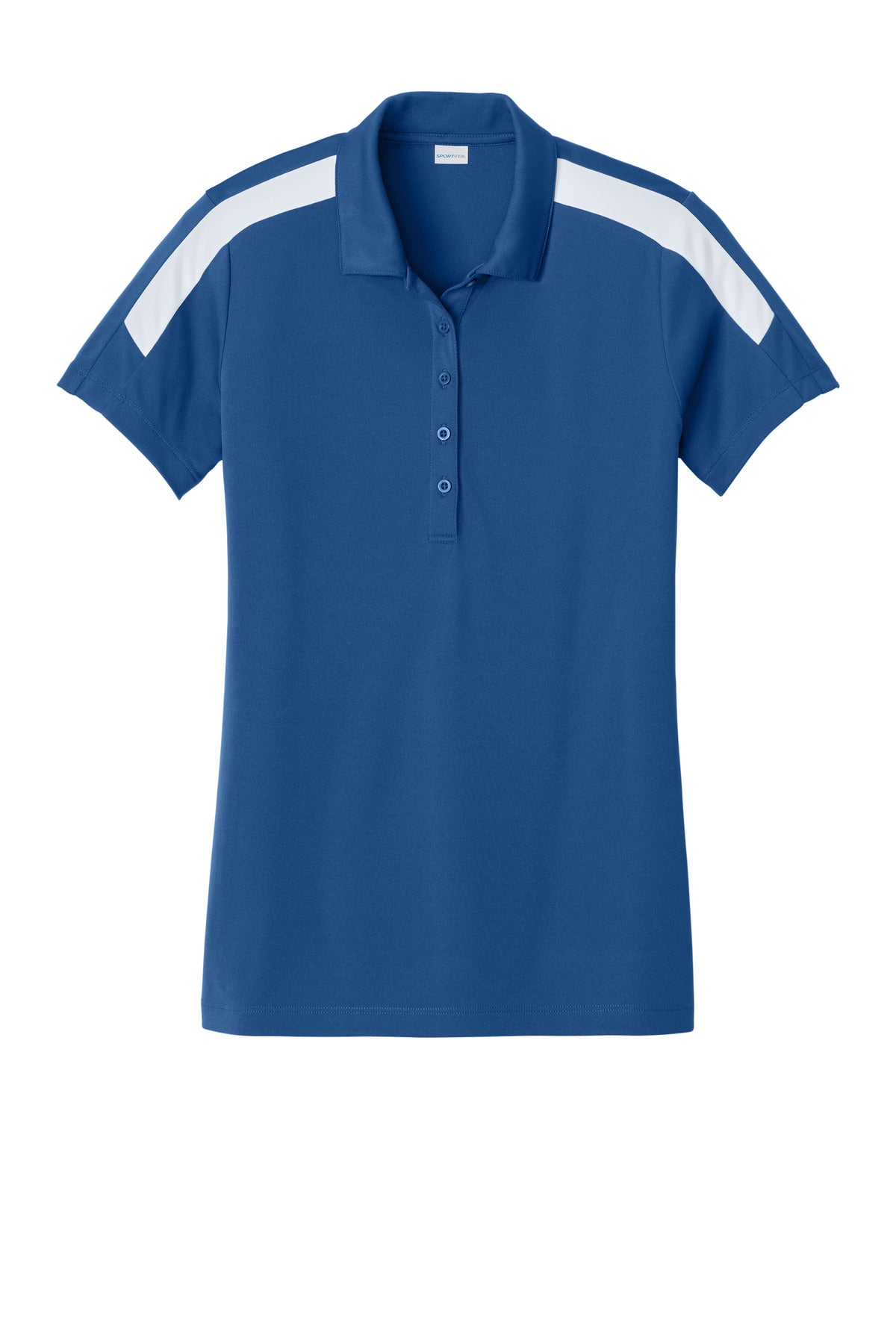 Support your team with this moisture-wicking polo. 3.8-ounce 100% poly interlock with PosiCharge technology UPF rating of 30+ Moisture-wicking Perfect for all-around team uniforming Self-fabric collar Self-fabric neck tape 5-button placket Dyed-to-match buttons Colorblock shoulder panels Tear-away label