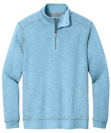 A fashionable sweater alternative youll always look pulled together and sophisticated in this comfortable 1/2-zip that features a slub texture knit and sun-bleached wash. 11.7-ounce 45/33/22 cotton/pima cotton/ Tencel Lyocell. Pigment garment overdyed fabrication. Mockneck with 1/2-zip placket. Side panels built-in for stretch. Rib knit cuff and hem. Distinctive contrast stitching. Embroidered Marlin at center back neck. Cut-out Marlin on zipper pull