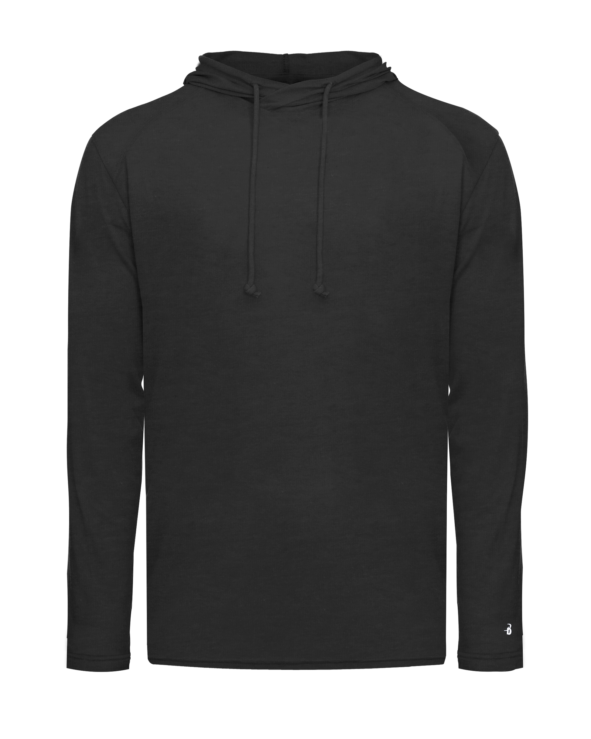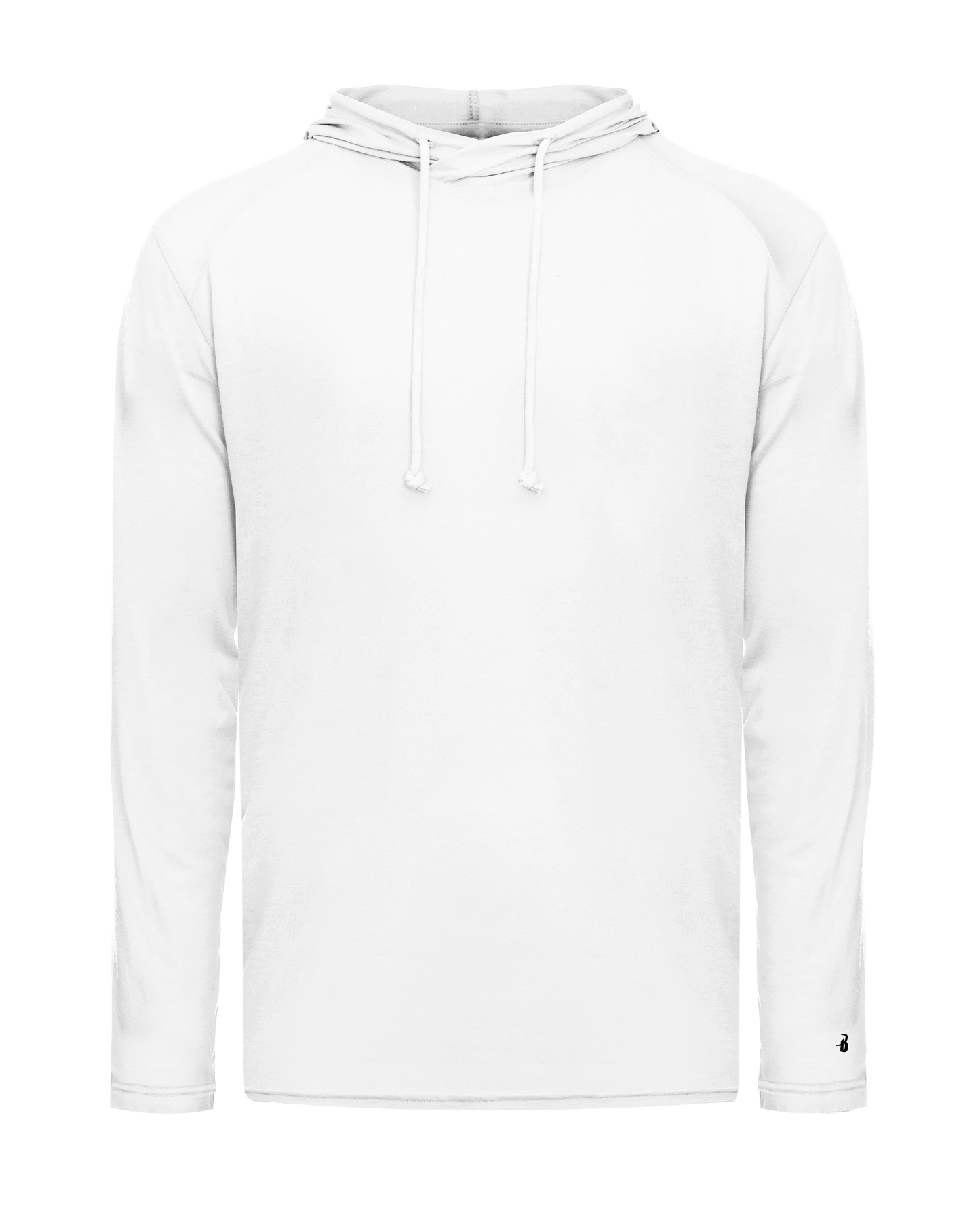 Badger sport shoulder for maximum movement. Self-fabric surplice hood with drawcord. Double-needle hem. Badger heat seal logo on left sleeve