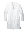 65/35 poly/cotton poplin Locker loop Left chest pocket with pen slot Top-loading front pockets Interior tablet pocket Side seam opening for easy access to pants pockets Back yoke 4-button placket opening Center back vent WonderWink heat transfer logo at left pocket Size medium: 38-inch back length